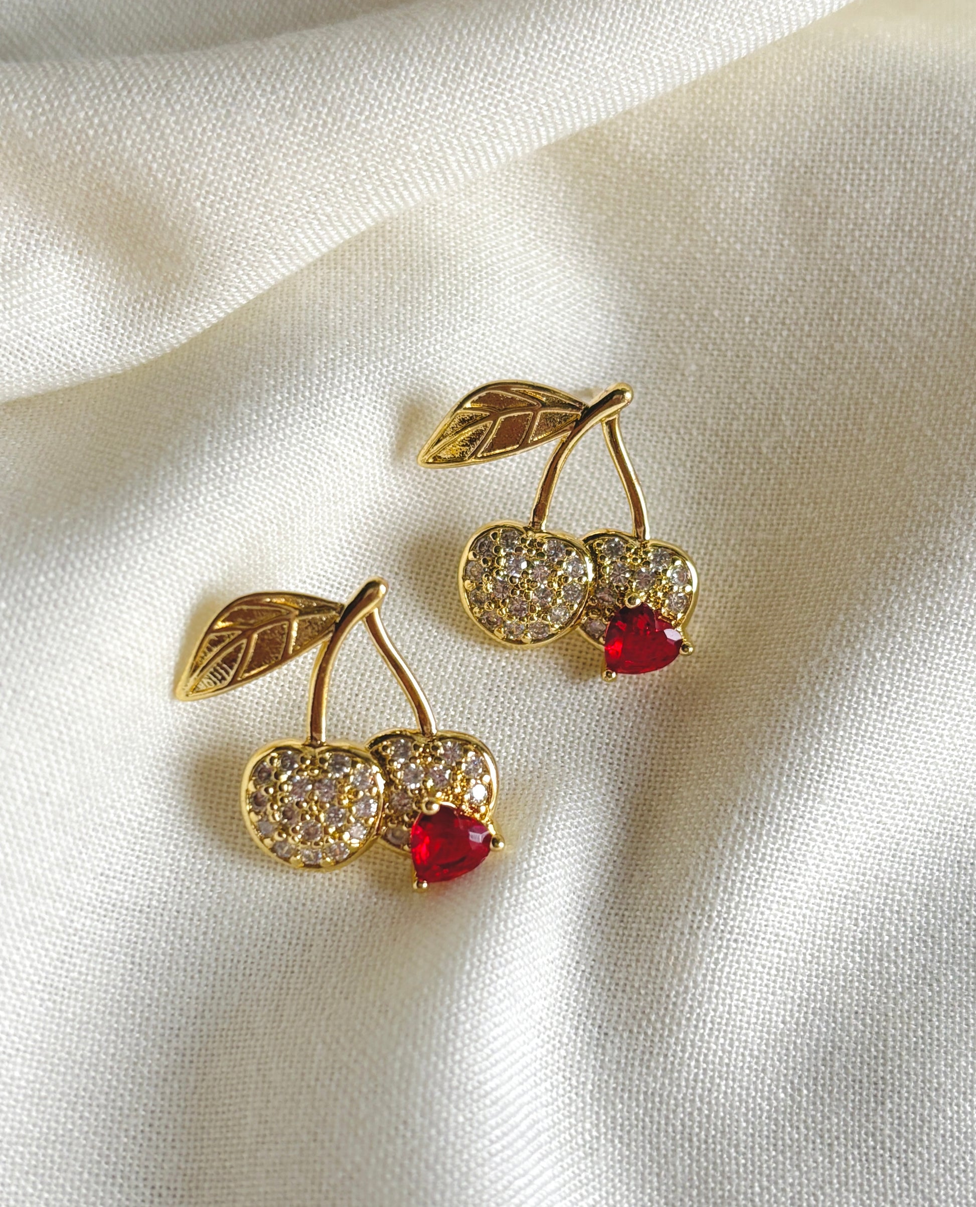 • Gold-plated cherry design with crystal pavé