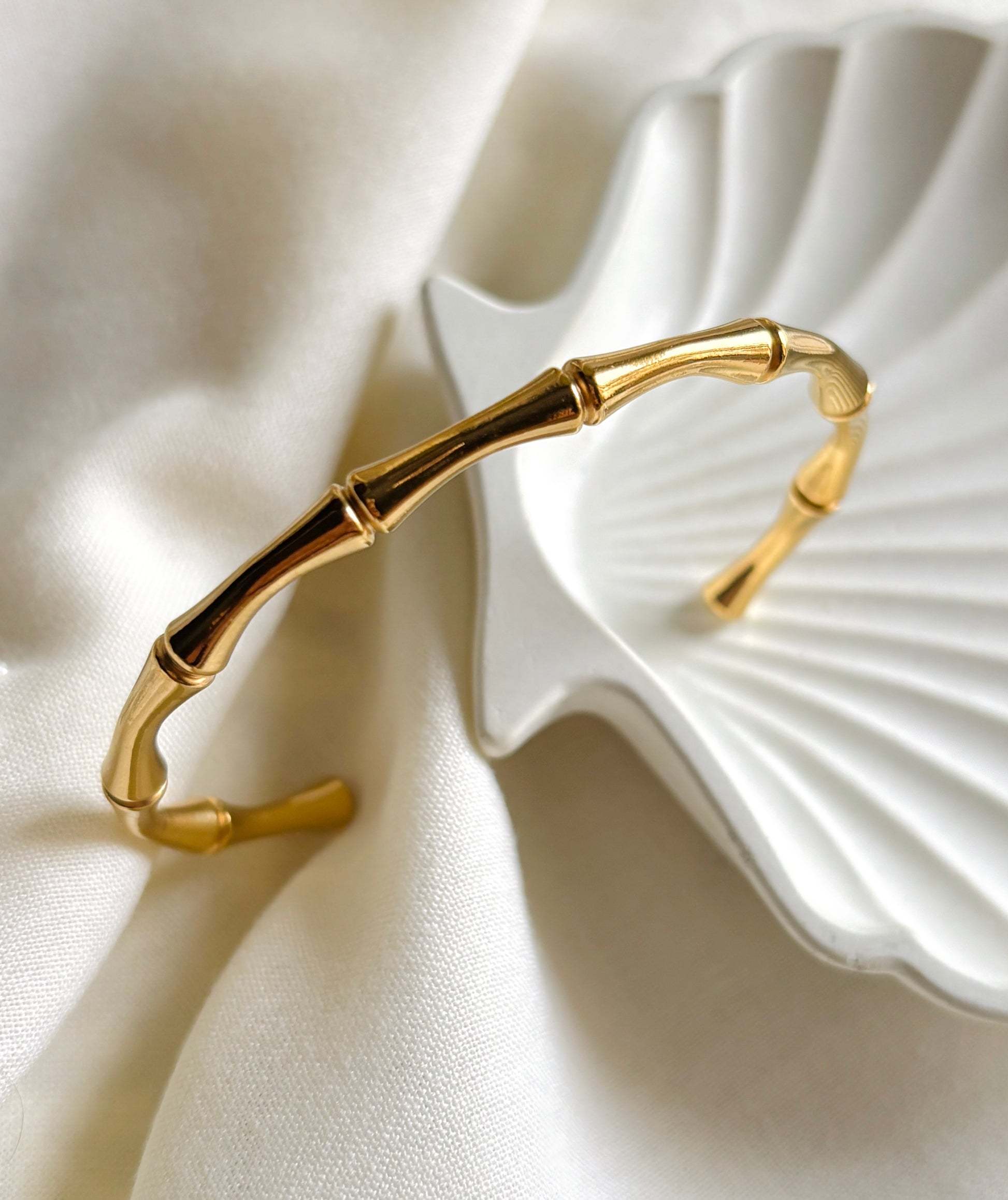Inspired by the elegance of bamboo, Bambara is a sleek open cuff bracelet crafted in high-shine gold tones. Its sculptural design mirrors nature’s harmony — a symbol of quiet strength and effortless grace. A timeless piece that blends minimalist style with organic beauty.